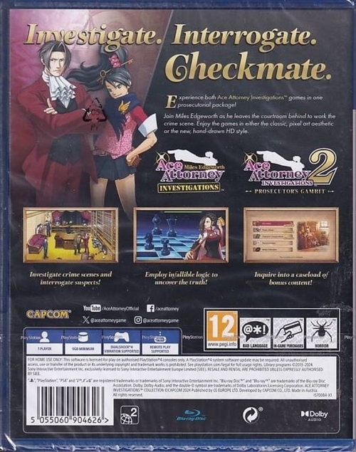 • Used Ace Attorney Investigations Collection for PS4 comes with cover and manual.