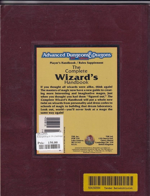 ADnD 2nd - The Complete Wizard's Handbook is a Player's Handbook Supplement meant for play with Advanced Dungeons & Dragons 2nd Edition published by TSR Inc.