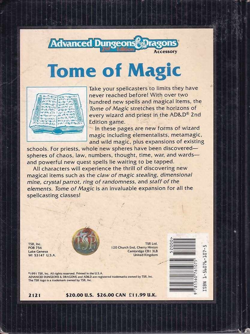 ADnD 2e - Tome of Magic is a hardback with 159 magical pages published by TSR Inc.