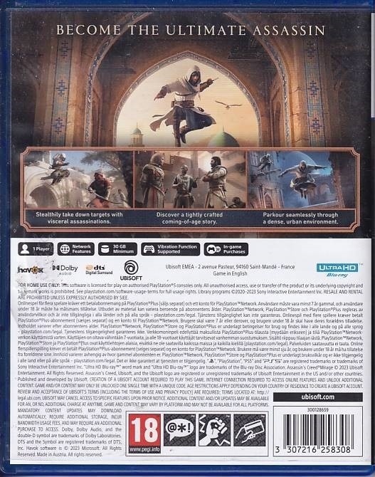 • Used Assassins Creed Mirage for PS5 comes with cover and manual.