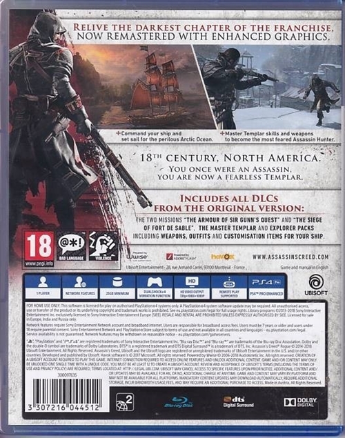 • Used Assassins Creed Rogue Remastered for PS4 comes with cover and manual.