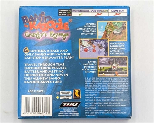 • Banjo-Kazooie: Grunty's Revenge for GameBoy Advance comes with the original box and manual.
