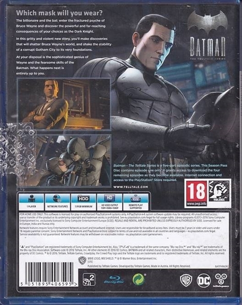 • Used Batman The Telltale Series for PS4 comes with cover and manual.