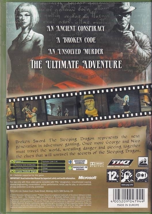 • Used Broken Sword The Sleeping Dragon for XBOX comes with cover and manual.
