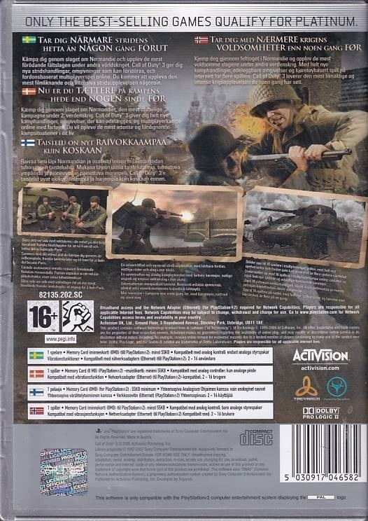 • Used Call of Duty 3 Platinum for PS2 comes with cover and manual.