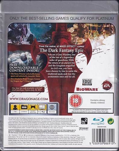 Used Playstation 3 game - Dragon Age Origins - Platinum