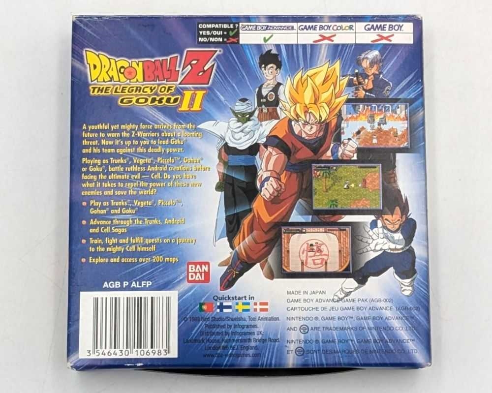 • Dragon Ball Z The Legacy of Goku II for GameBoy Advance comes with the original box and manual.