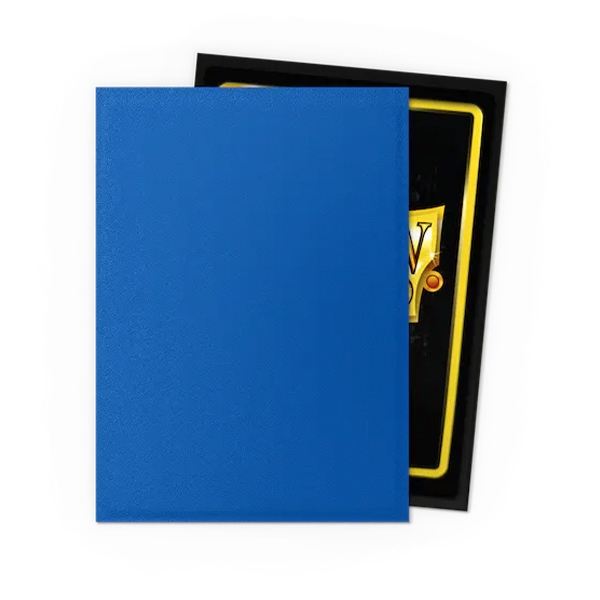 Protect your cards with these Dragon Shield Card Sleeves featuring a clear front and a matte, textured dark blue back. These sleeves are completely opaque black on the inside, making them perfect for cards with black borders. The pack contains 100 plastic sleeves for standard-size cards that protect your most valuable cards. Make sure your cards stand the test of time!