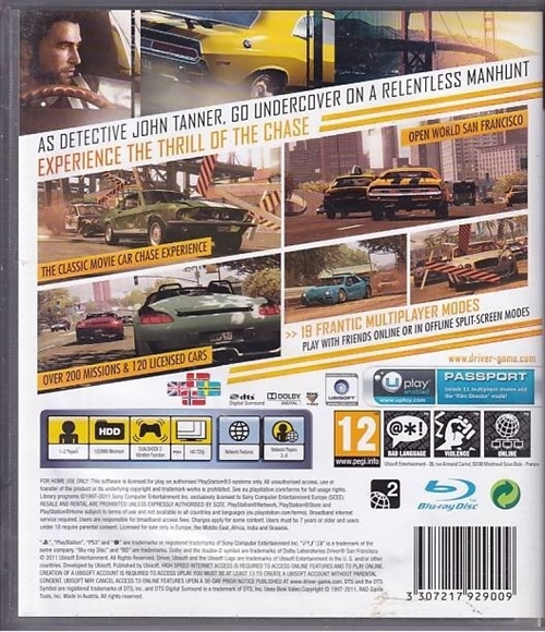 • Used Driver: San Francisco for PS3 comes with cover and manual.