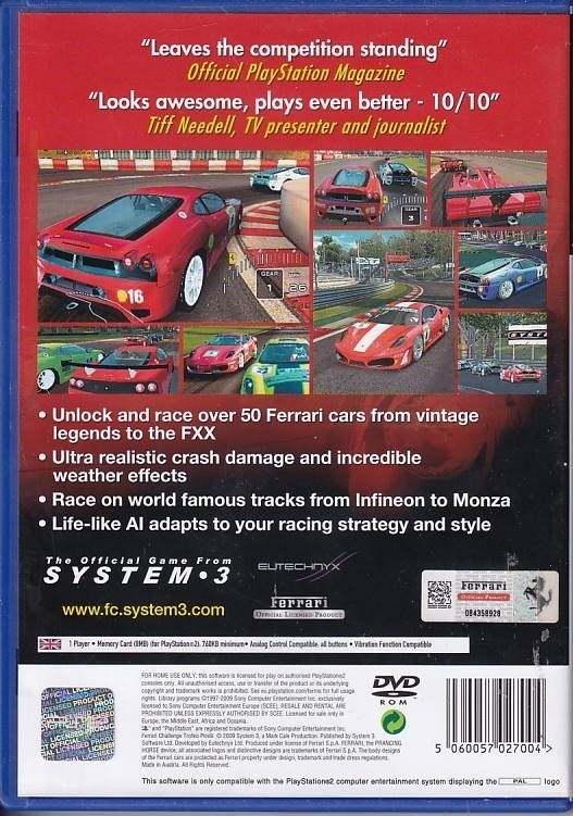 • Used Ferrari Challenge Trofeo Pirelli for PS2 comes with cover and manual.