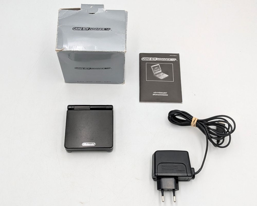 Gameboy Advance SP - Model AGS-001 - Black - Original Box - Console - SNR XEH17765915 (B Grade) (Used)