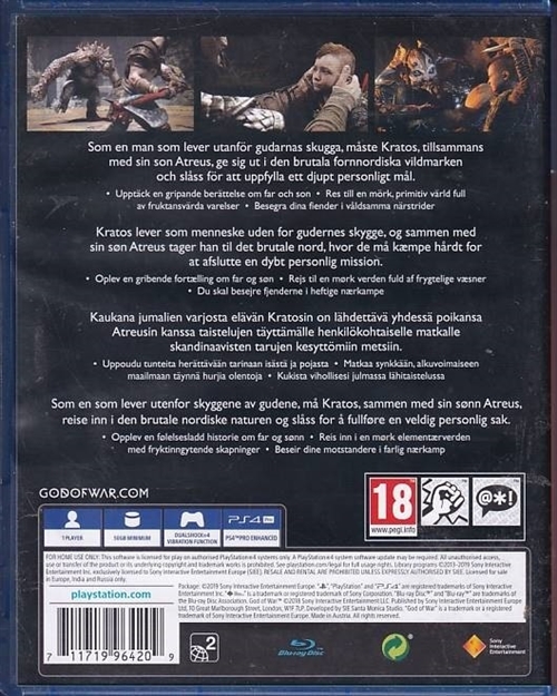 • Used God of War Playstation Hits for PS4 comes with cover and manual.