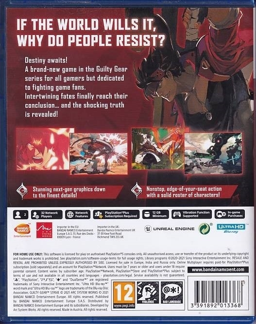 • Used Guilty Gear - Strive for PS4 comes with cover.