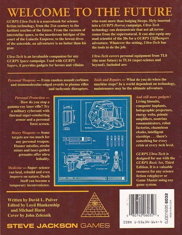 GURPS -  Ultra-Tech is designed for use with the GURPS basic set, Third Edition. It is a valuable resource for any science fiction roleplayer or Game Master using any game system.