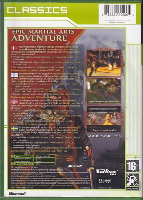 • Used Jade Empire - Classics for XBOX comes with cover and manual.