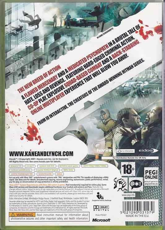 • Used Kane and Lynch Dead Men for XBOX 360 comes with cover and manual.