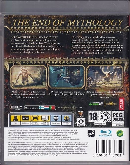 • Used Legendary for Playstation 3 comes with cover and manual.