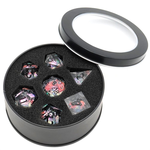 Liquid Core Dragon Dice - Crystal black numbers - Resin dice set sharp edges - Epic Dwarf Dice
