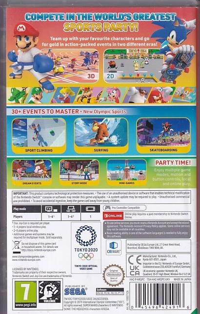 • Used Mario & Sonic at the Olympic Games Tokyo 2020 for Switch comes with cover.