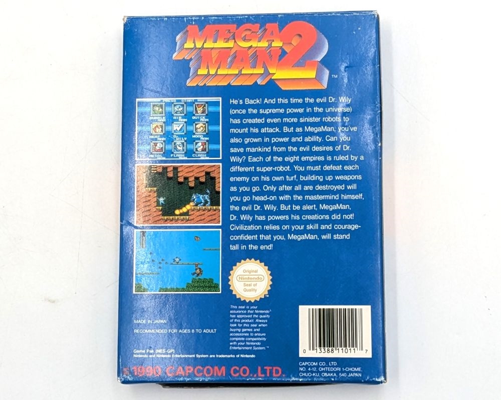 • Used Mega Man 2 - Complete In Box comes with the original box, a box protector, and manual.