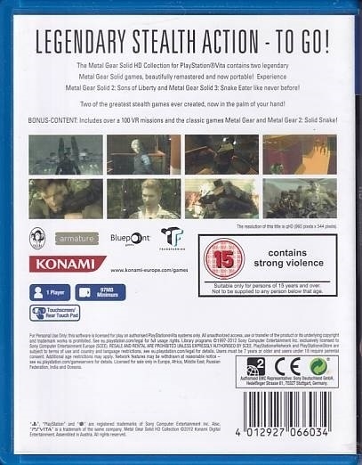 • Used Metal Gear Solid HD Collection for PS Vita comes with cover and manual.