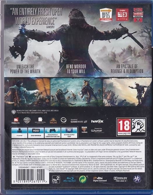 Used Playstation 4 game - Middle Earth Shadow of Mordor