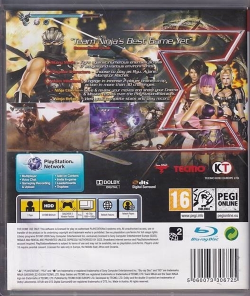 • Used Ninja Gaiden Sigma 2 for Playstation 3 comes with cover and manual.