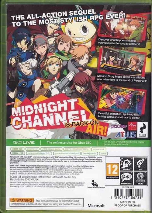 • Used Persona 4 Arena for XBOX 360 comes with cover and manual.