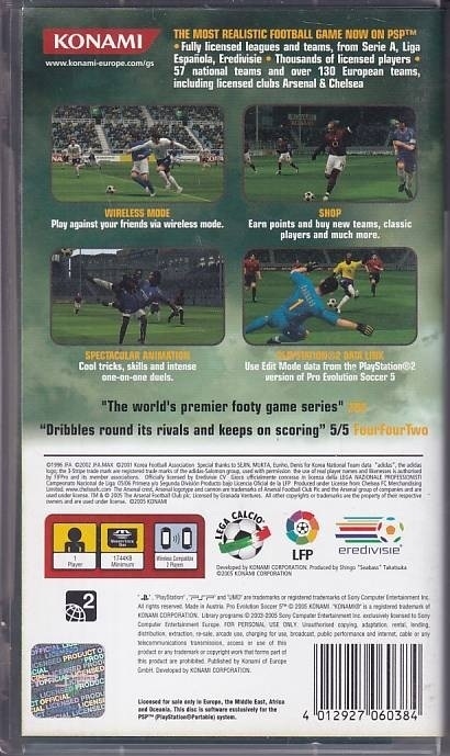 • Used Pro Evolution Soccer 5 for PSP comes with cover and manual.