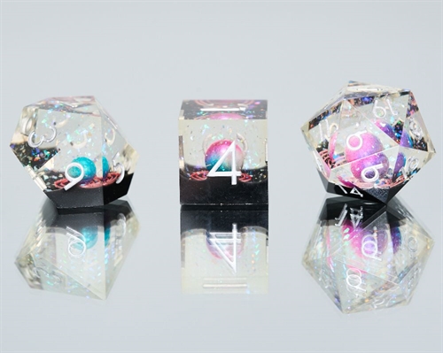 These fascinating dice with a tiny perl inside look like a tiny galaxy! They are absolutely stunning and bring a touch of elegance to your roleplaying table! Perfect for players who want a little extra flair when the dice start rolling.