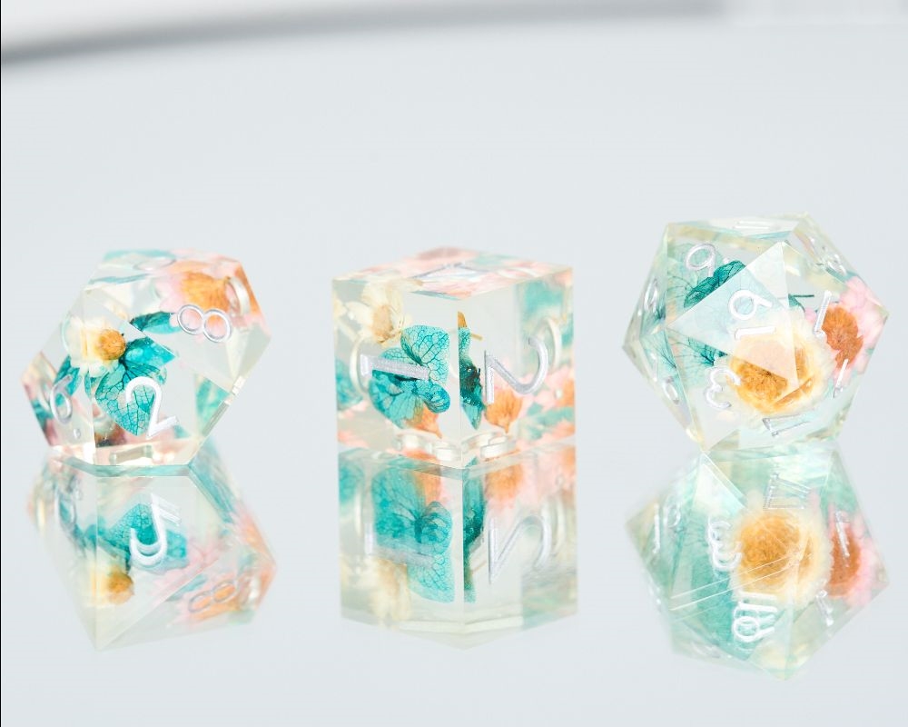 These clear dice with Colorful Flowers inside are absolutely stunning and bring a touch of elegance to your roleplaying table! Perfect for players who want a little extra flair when the dice start rolling.