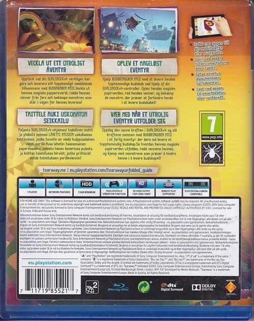 • Used Tearaway Unfolded for PS4 comes with cover and manual.