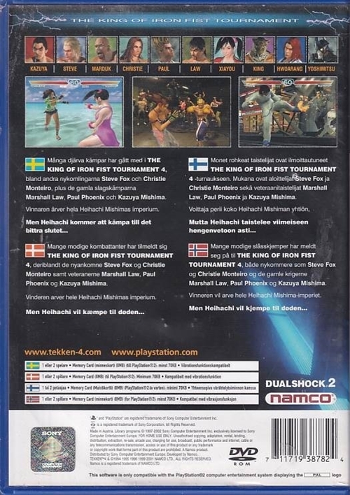• Used Tekken 4 for PS2 comes with cover and manual.