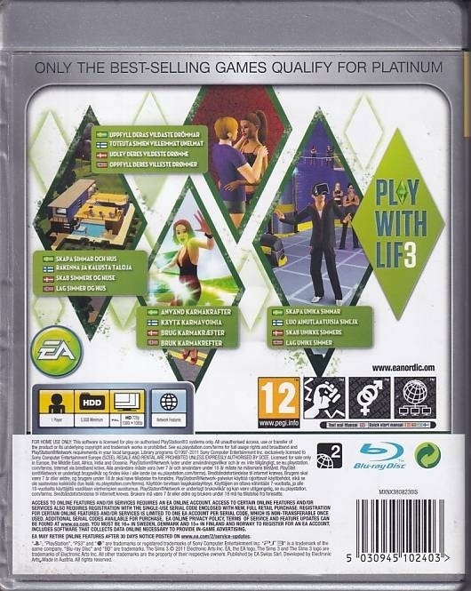 • Used The Sims 3 - Platinum for PS3 comes with cover but and manual.