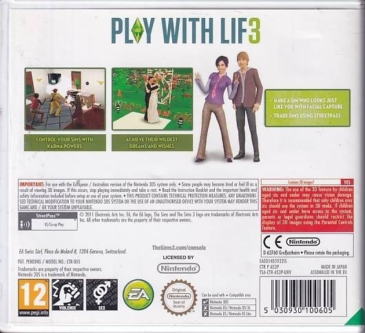 • Used The Sims 3 for 3DS comes with cover and manual.