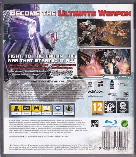 • Used Transformers War for Cybertron for PS3 comes with cover and manual.