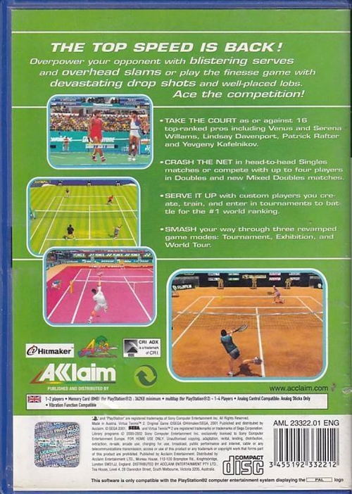 Virtua Tennis 2 - PS2 (B Grade) (Used) (eng)