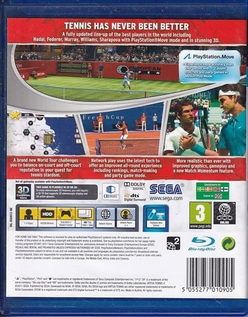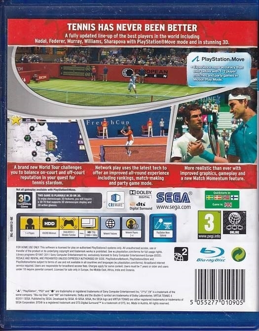• Used Virtua Tennis 4 for PS3 comes with cover and manual.