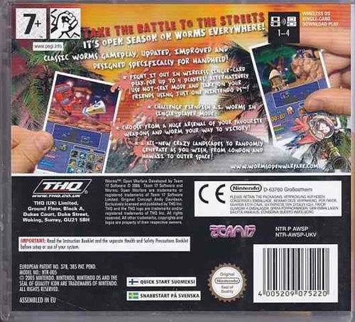 • Used Worms: Open Warfare for NDS comes with cover and manual.
