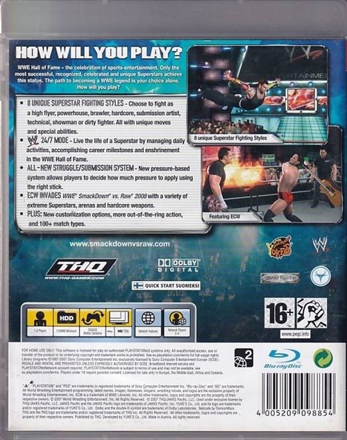 WWE SmackDown vs Raw 2008 - PS3 (B Grade) (Used) (eng)
